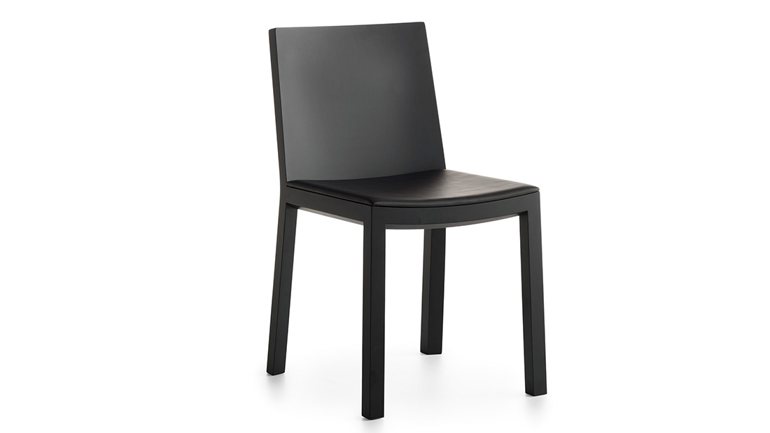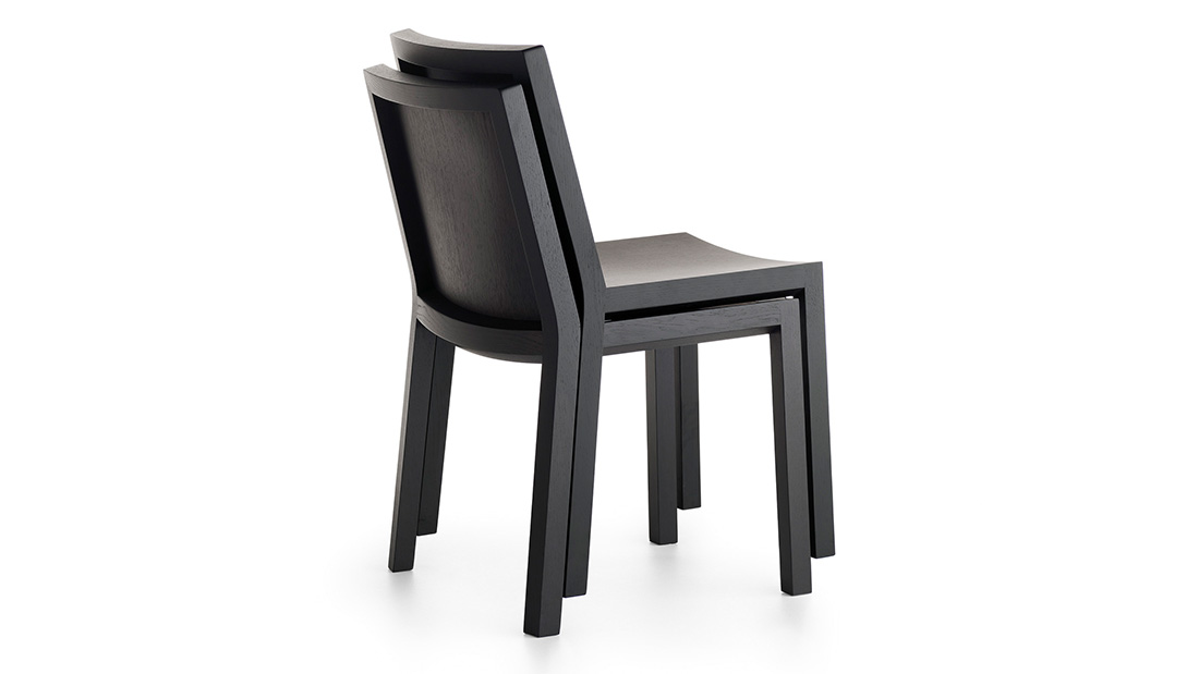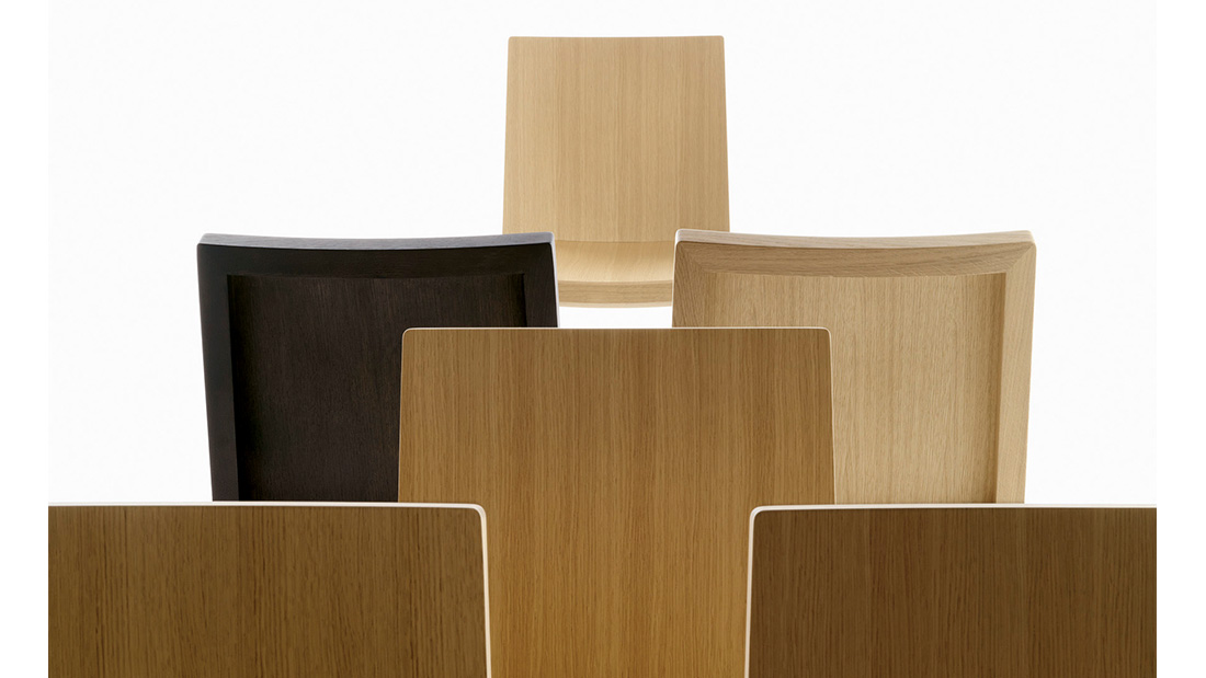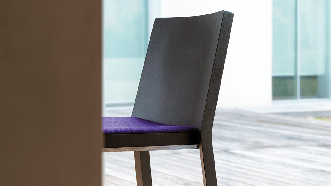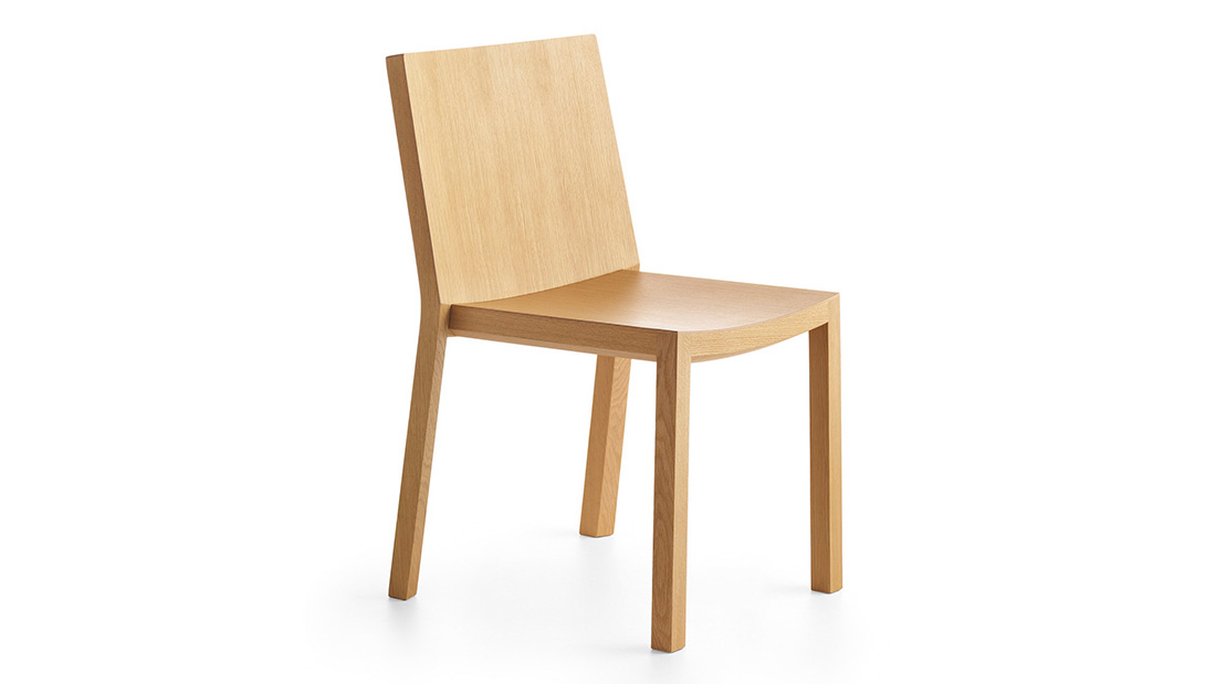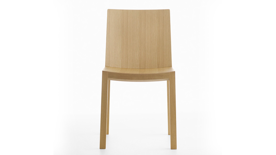 Essentiality blends perfectly with the warmth of beech and oak wood in this chair, which is available also with upholstered seat. The solid wood frame, which is exposed in the rear side of the chair for greater aesthetic impact, supports a seat and backrest that offer body support and maximum comfort thanks to the tilt angle and perfect curvature.