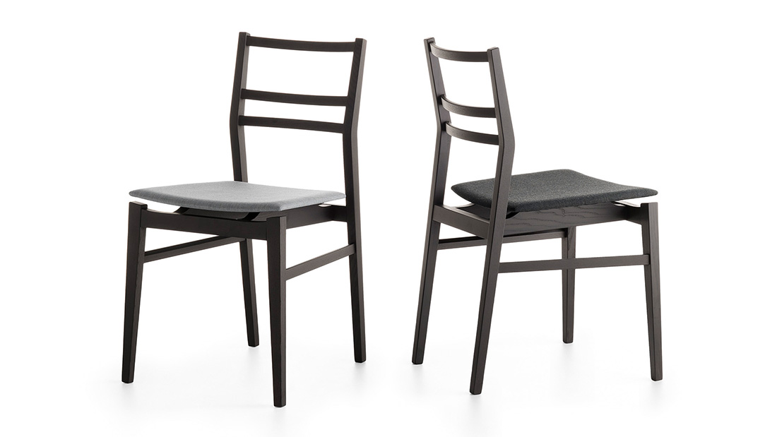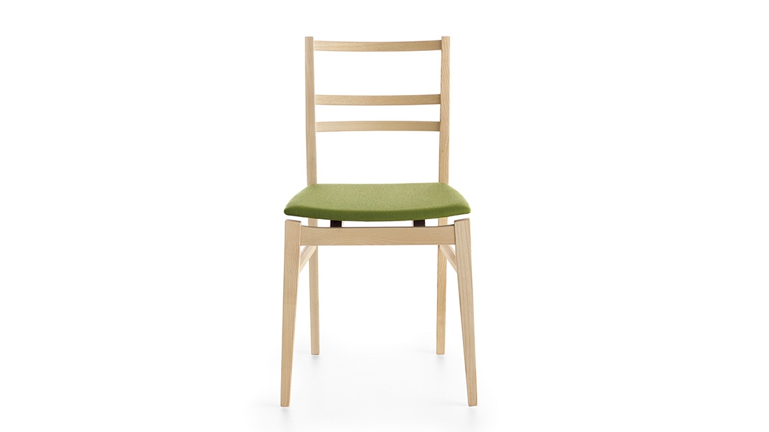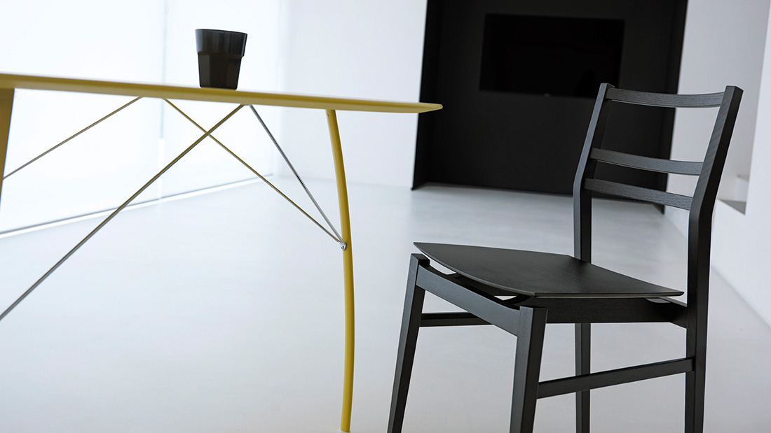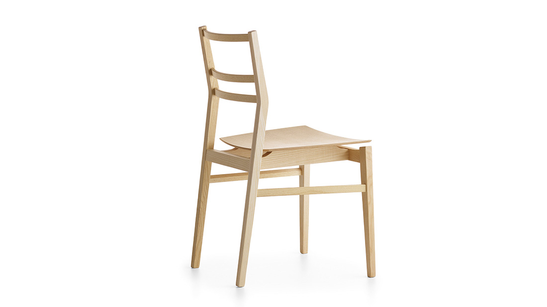 The intrinsic strength of solid ash, with its long fibre structure, gives Già great robustness and stability, despite the light, slender lines and delicate form that represent the main features of this chair strong personality. The seat, with its peculiar curvature, seems to be suspended on the frame, with a light and dynamic effect.