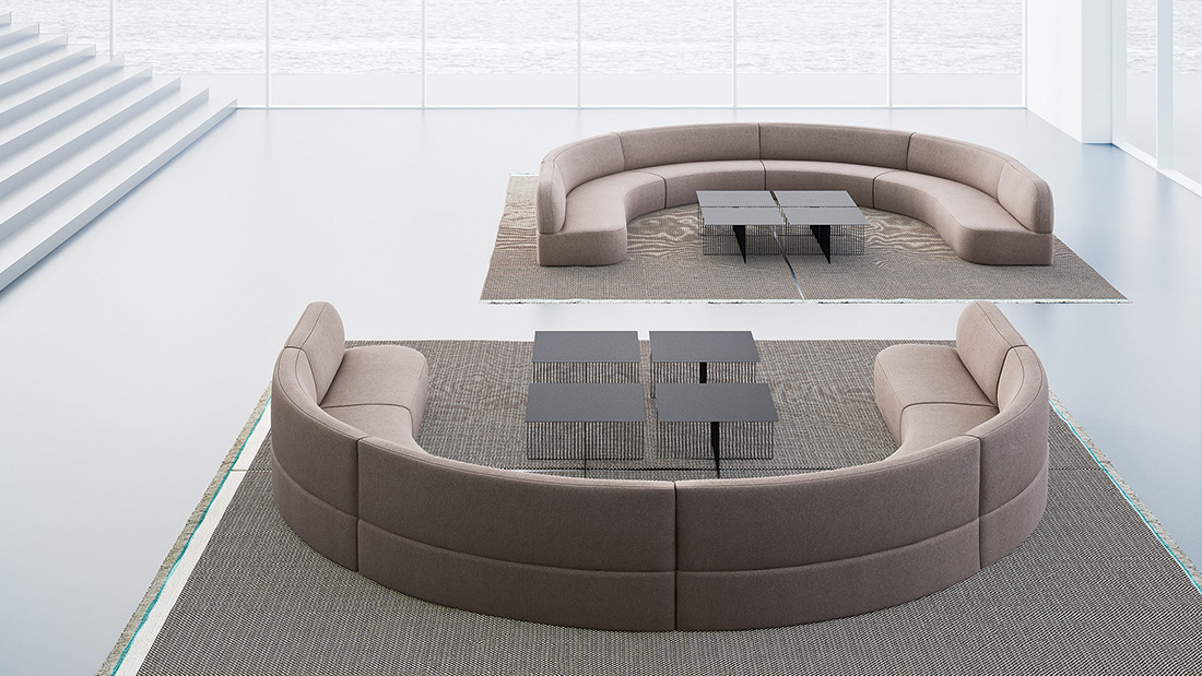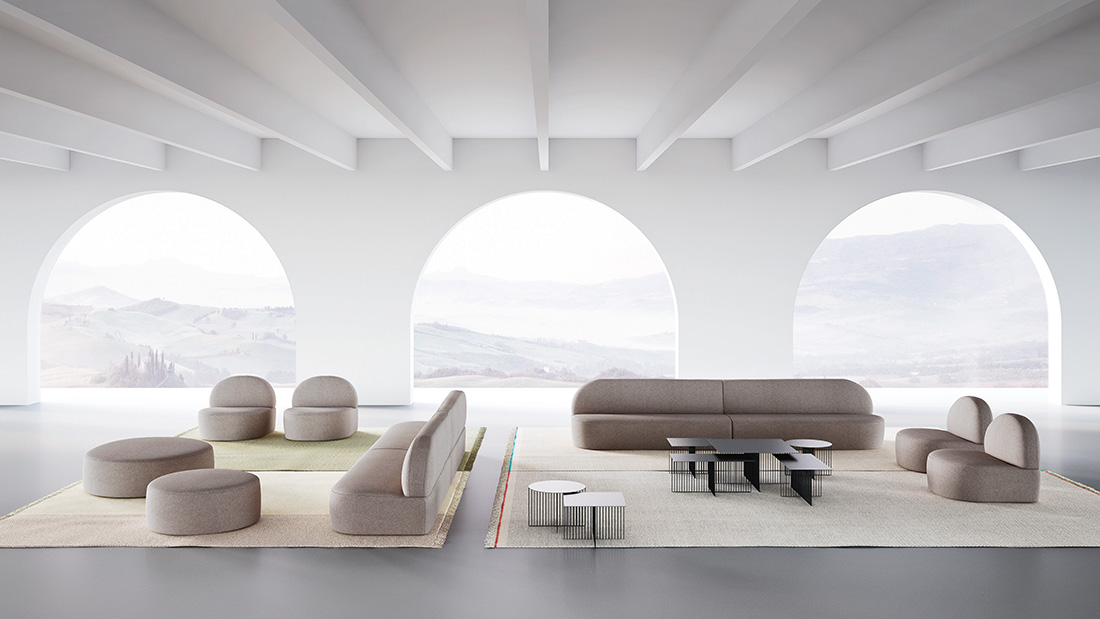 Designer Antonio Rodriguez A new design in which independent or modular sofas, armchairs and poufs can create a wide variety of solutions, for many furnishing needs in many environments like living rooms, waiting rooms, refined hotels, or airport halls. Twenty-two elements in diverse shapes and sizes can be combined to create countless domestic or collective landscapes, characterised by essential lines and soft and full shapes.