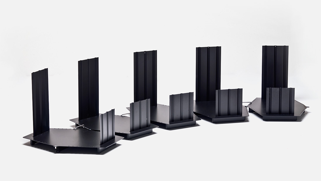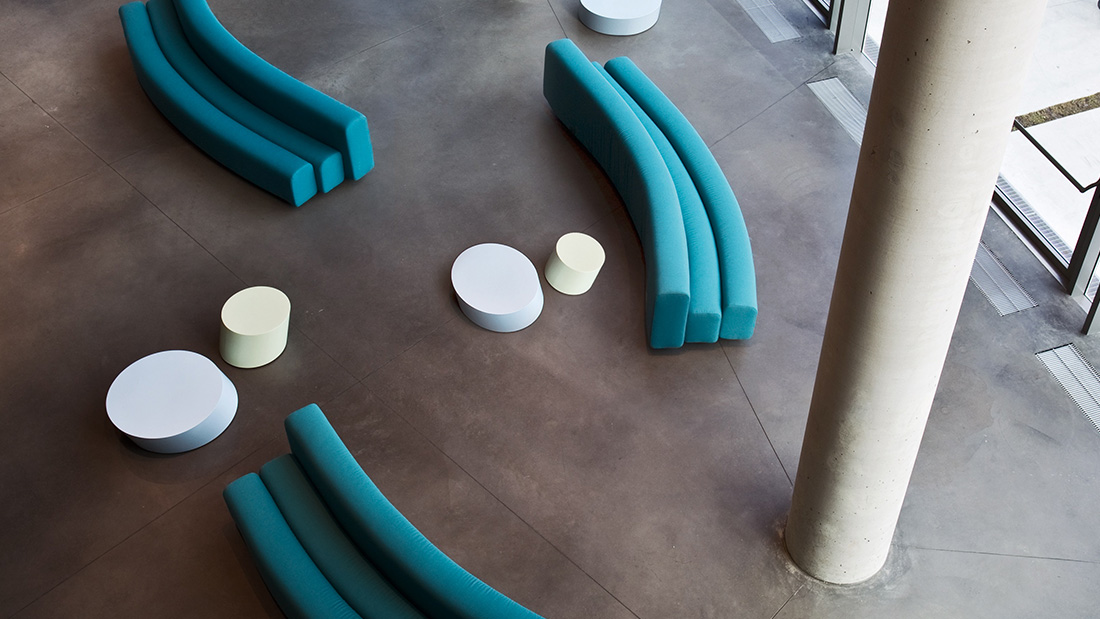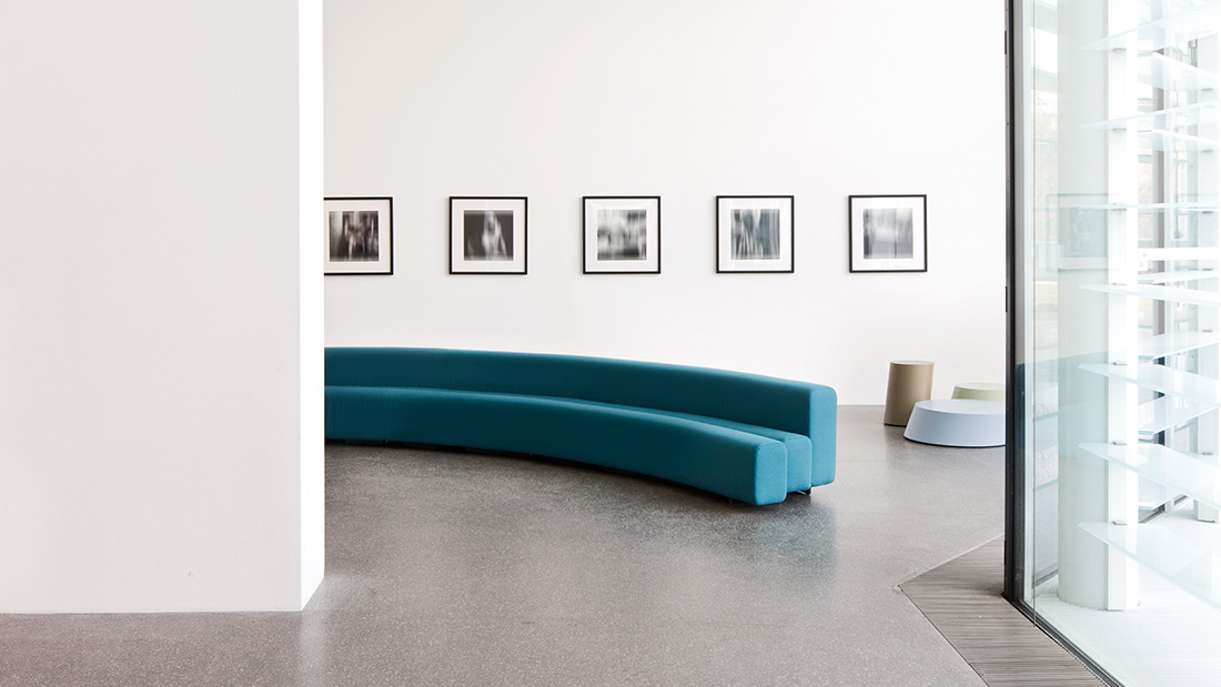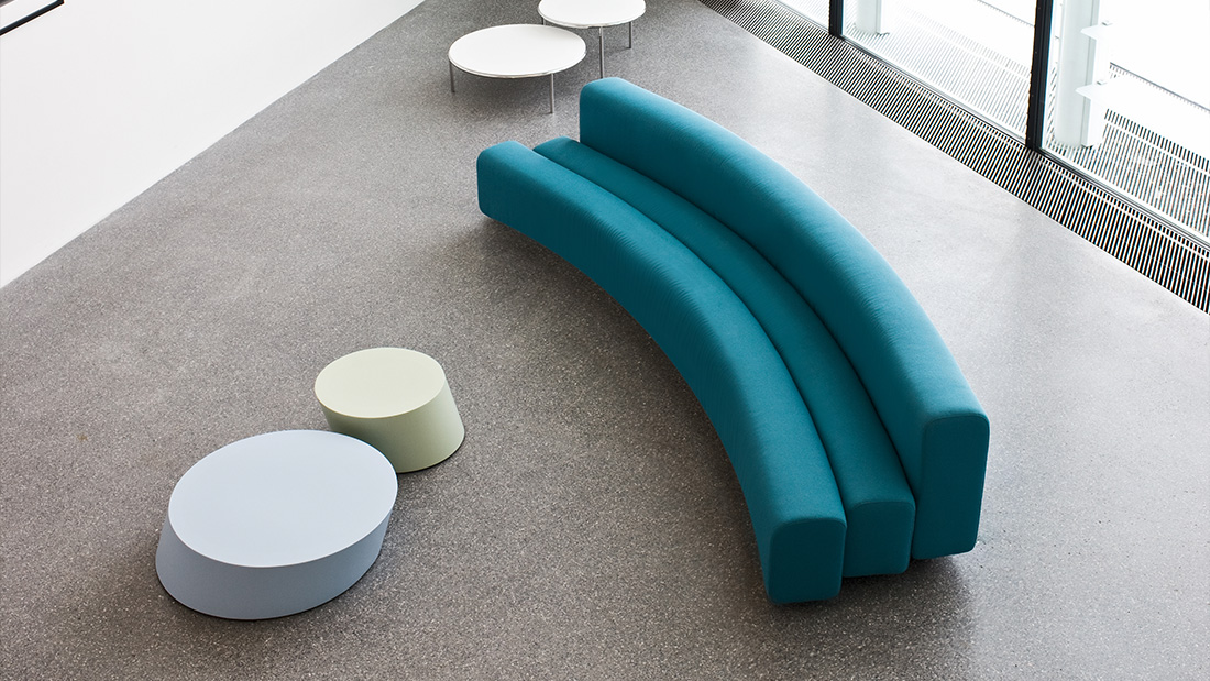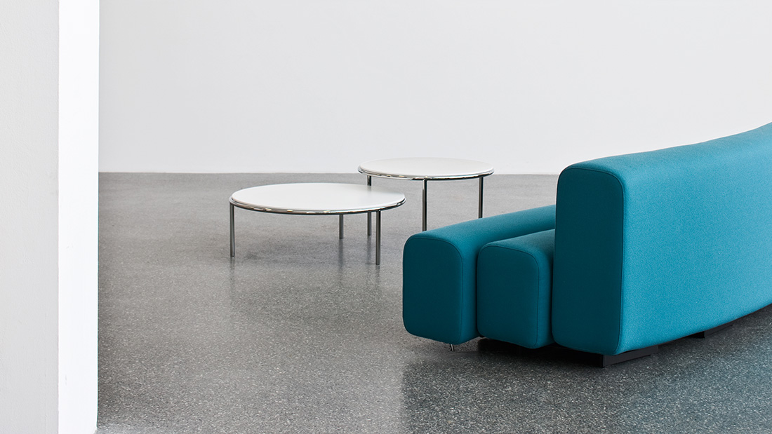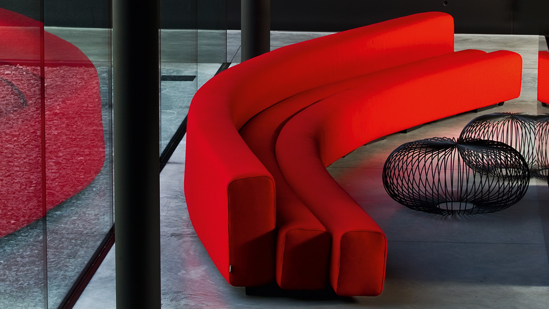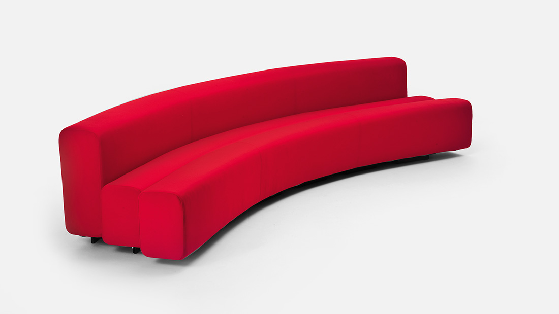 Designer Pierre Paulin Designed in 1967 and developed in 1970 for the Osaka Expo, this system of modular sofas, with curvy, organic lines, allows infinite solutions to be created by combining and aligning the simple curved elements. The steel structure is covered with non-deforming, expanded polyurethane padding, upholstered in stretch fabric.